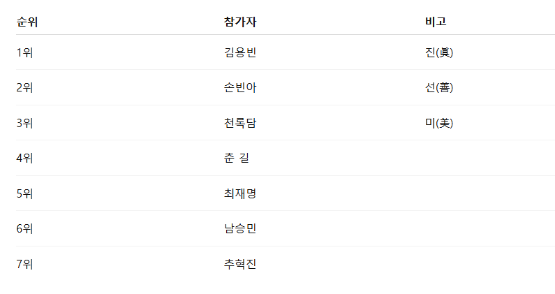- 결승전 무대 : 한 편의 드라마 같은 감정선으로 TOP4 입성