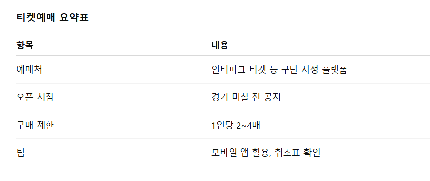 플레이오프 티켓은 정규 시즌보다 훨씬 구하기 어렵습니다. 예매는 주로 인터파크 티켓과 같은 공식 예매처에서 진행되며, 경기 개시 며칠 전 오픈됩니다. 1인당 구매 수량이 제한되는 경우가 많아, 예매 시작 시간에 맞춰 접속하는 것이 중요합니다. 모바일 앱을 통한 예매 속도가 빠르다는 후기가 많으며, 취소표가 경기 당일 풀릴 수 있으니 수시로 확인하는 것도 방법입니다.